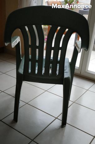 cède ces 4 chaises de jardin vertes en pvc très solides a enlever &règler sur place