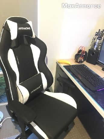 Je vends une chaise gaming AKRacing en très bon état, idéale pour les gamers ou pour travailler confortablement devant un ordinateur. Chaise ergonomique et très confortable, avec coussins pour le dos et la nuque. Elle offre un excellent maintien pour les longues sessions de jeu ou de travail.