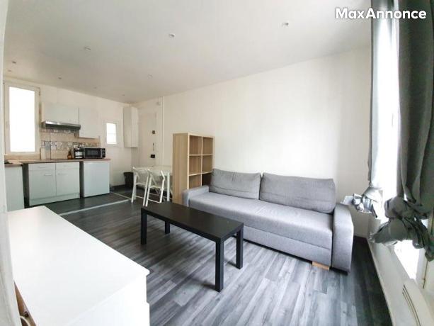 Location meublé. A 5 minutes de la gare SNCF RER D de Saint-Denis et 13 minutes des stations de métro ligne 13 Basilique et Porte de Paris. Dans un immeuble ancien au premier étage, un appartement deux pièces comprenant séjour avec cuisine équipée ouverte, une chambre et une salle d'eau avec WC. Chauffage individuel électrique, fenêtres double vitrage, lave-linge.