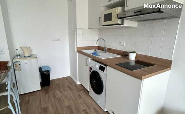 - cuisine fonctionnelle équipée (frigo, plaque de cuisson, hotte, micro-ondes, rangements)