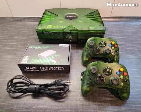 Je mets en vente mon Microsoft Xbox Classic Crystal Vert doté de 128 Mo RAM, 1 To HDD, HDMI très agréable et rare