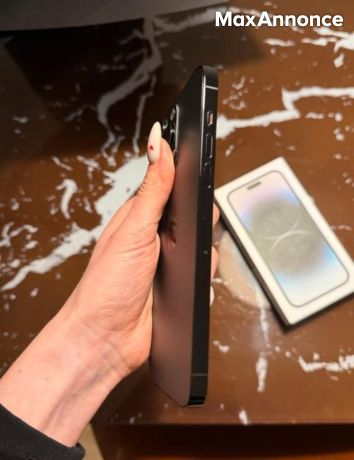 Je vends mon iPhone 14 Pro Max 256 Go Noir sidéral. L'appareil est en parfait état, comme neuf. Il a toujours été utilisé avec une coque de protection et manipulé avec soin. Aucune rayure, aucun impact, et il est parfaitement fonctionnel. Détails : • Modèle : iPhone 14 Pro Max • Stockage : 256 Go • Couleur : Noir sidéral • État : Très bien entretenu, aucune trace d'usure • Capacité de la batterie : 76 % • Emballage d'origine inclus L'iPhone fonctionne parfaitement. Je le vends car j'en ai acheté un nouveau. Vente entre particuliers, donc pas de garantie ni de retour. N'hésitez pas à me contacter si vous êtes intéressé(e).